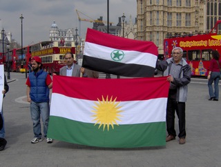 Photo: Kurds fly their flag alongside the Ahwazi flag in a show of solidarity