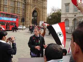 Photo: Peter Tatchell with Ahwazi demonstrators outside the Houses of Parliament in London