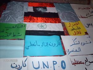 The protestors flew the UN flag alongside the Ahwazi flag to appeal for UN involvement to end ethnic cleansing. State security forces broke up the demonstrations. They also carried a banner with the letters "UNPO", referring to the Unrepresented Nations and Peoples Organisation which has been lobbying on behalf of the Ahwazi rights at an international level.