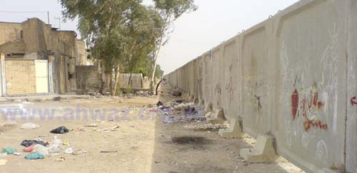 Separation walls in Ahwaz such as the one pictured above are designed to segregate the indigenous Arab population from wealthier non-Arab districts built on land confiscated from Arabs. In 2003, the regime bombed hundreds of homes in the Arab populated Sepidar district of Ahwaz City, displacing thousands of indigenous Ahwazi Arabs to make way for homes for ethnic Persians. Ethnically exclusive residential developments such as Shirinshahr and Ramin have been built in recent years to house Persians from Yazd and Fars provinces who have been brought into the area to take up jobs denied to Arabs (